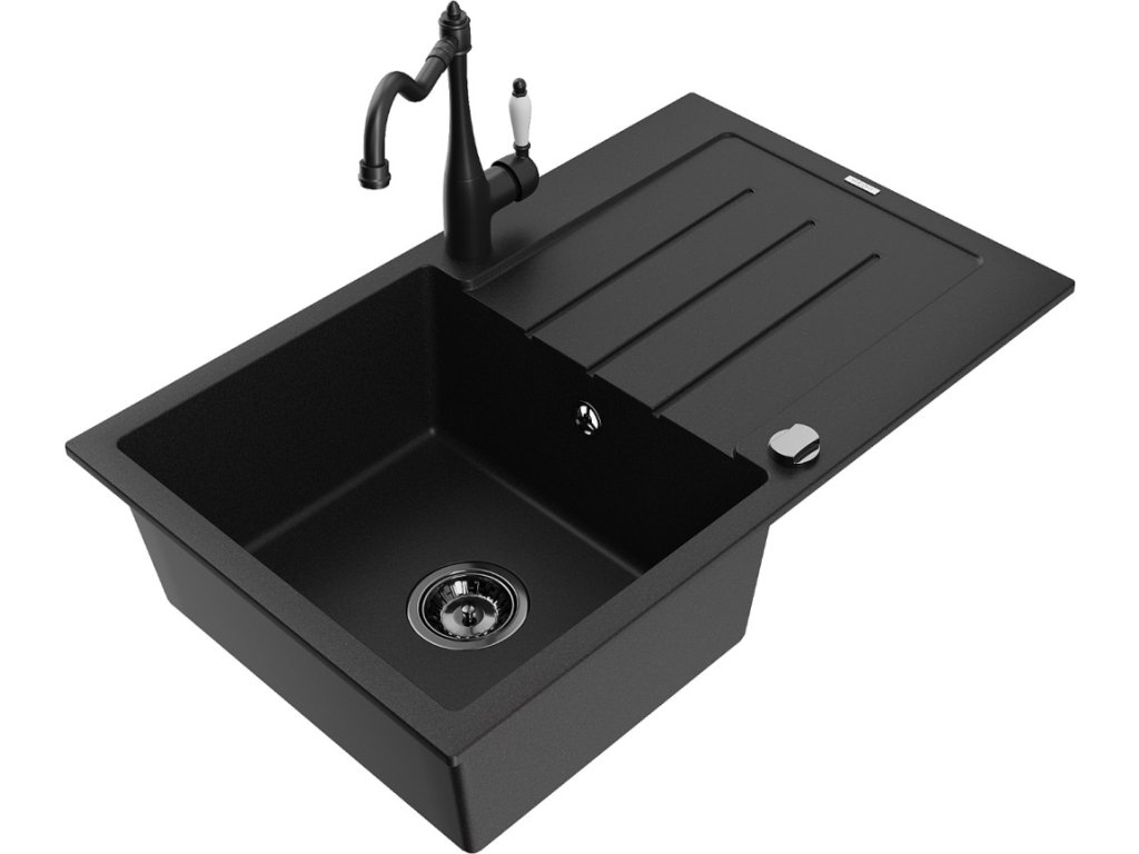 MEXEN/S - Bruno granitový dřez 1-miska s odkapávačem včetně baterie Carla, černá 6513-77-670700-70-B