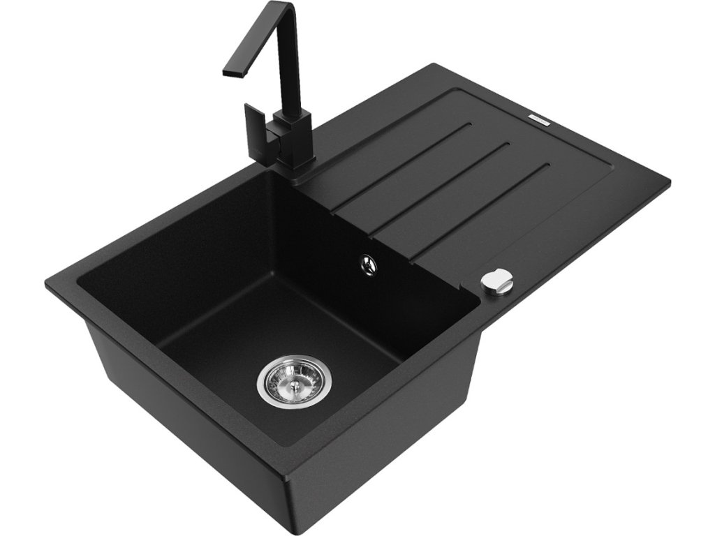 MEXEN/S - Bruno granitový dřez 1-miska s odkapávačem včetně baterie Rita, černý 6513-77-670300-70