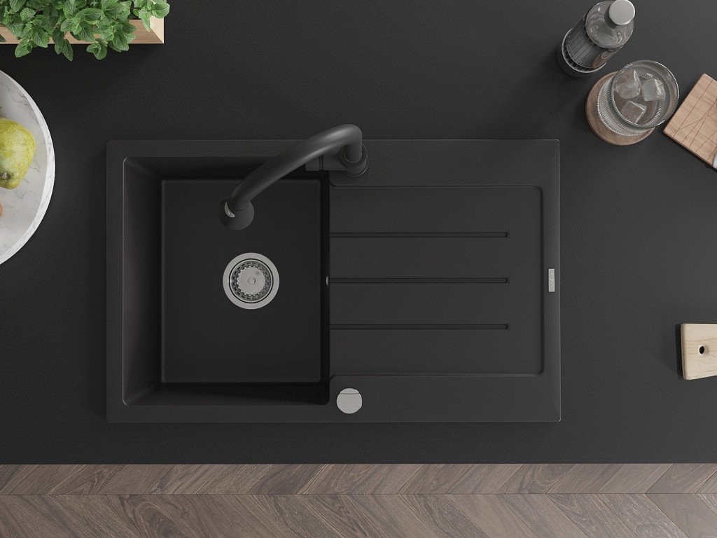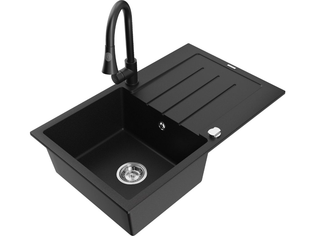 MEXEN/S - Bruno granitový dřez 1 s odkapávačem včetně baterie Elia, černá 6513-77-670101-70