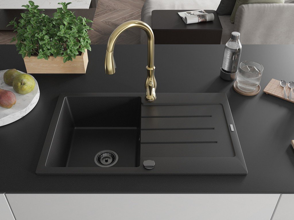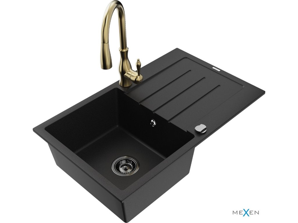 MEXEN/S - Bruno granitový dřez 1 s odkapávačem včetně baterie Savita, černá 6513-77-672601-50-B