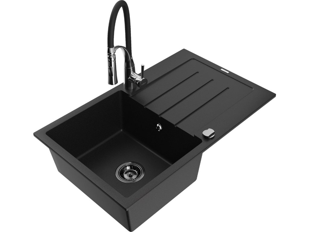 MEXEN/S - Bruno granitový dřez s odkapávačem včetně baterie Aster, černá 6513-77-73450-07-B