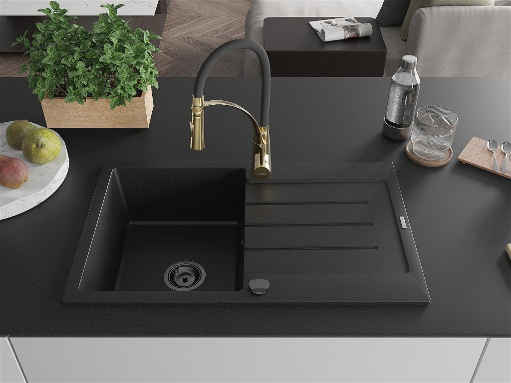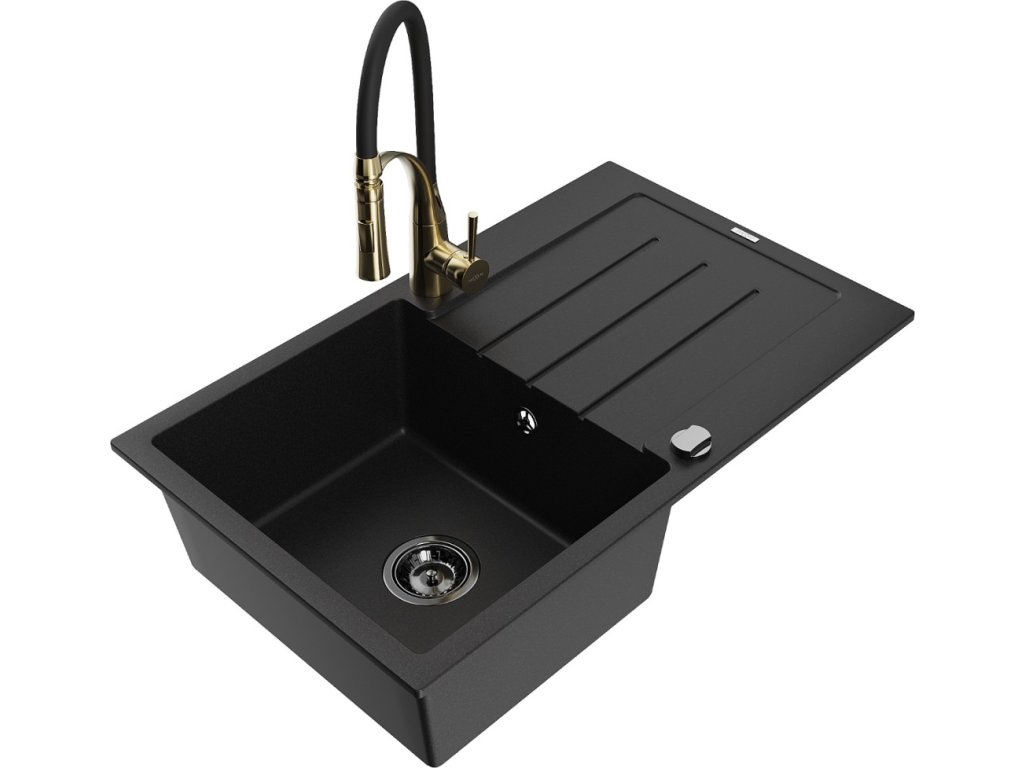 MEXEN/S - Bruno granitový dřez s odkapávačem včetně baterie Aster, černá 6513-77-73450-57-B