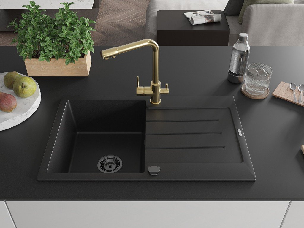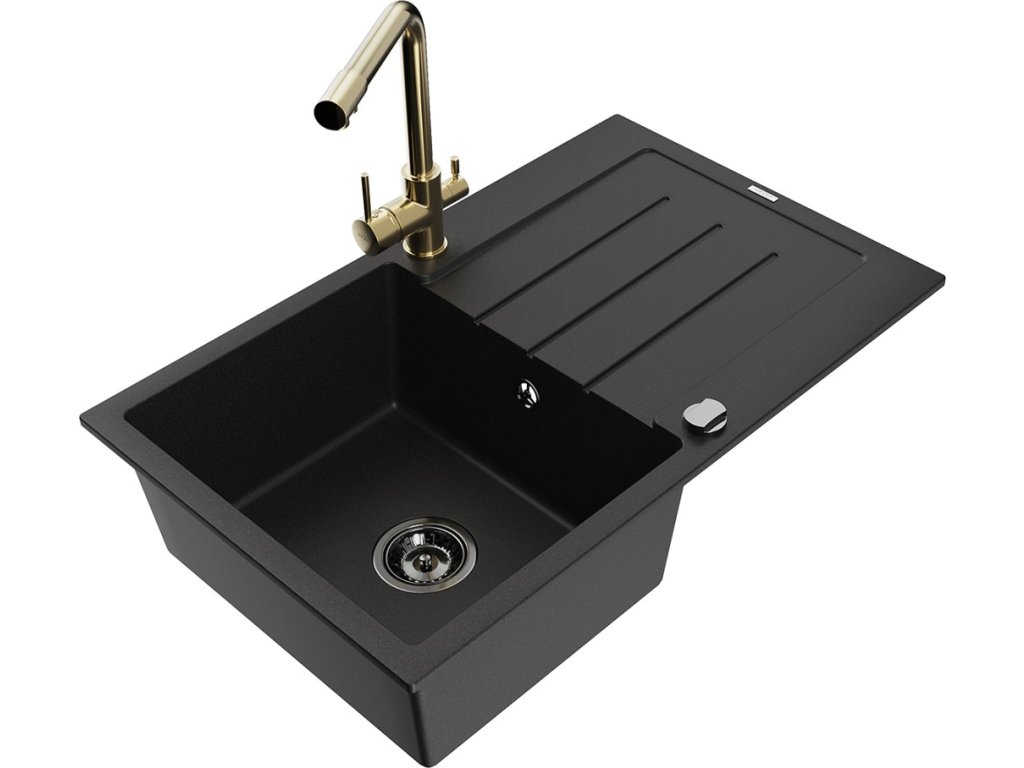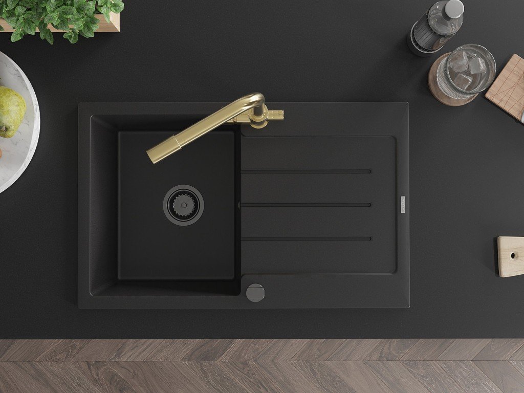 MEXEN/S - Bruno granitový dřez s odkapávačem včetně baterie Duero, černá 6513-77-671600-50-B