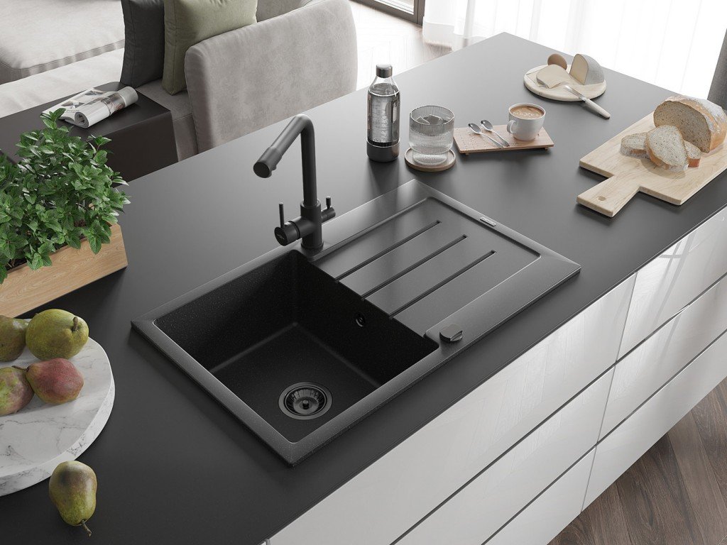 Kuchyňský granitový dřez odolný vůdči poškrábání, teplotním šokům a nárazům. Směs přírodní pryskyřice a hustého granitu.