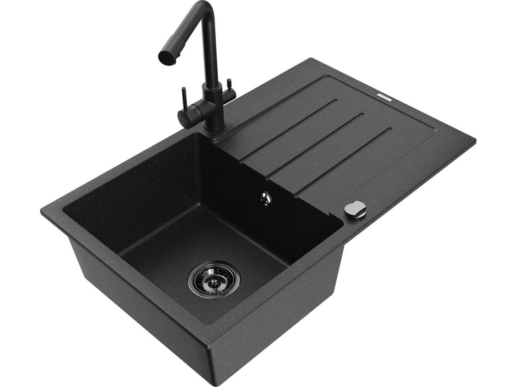MEXEN/S - Bruno granitový dřez s odkapávačem včetně baterie Duero, černá/stříbrná metalik 6513-73-671600-70-B