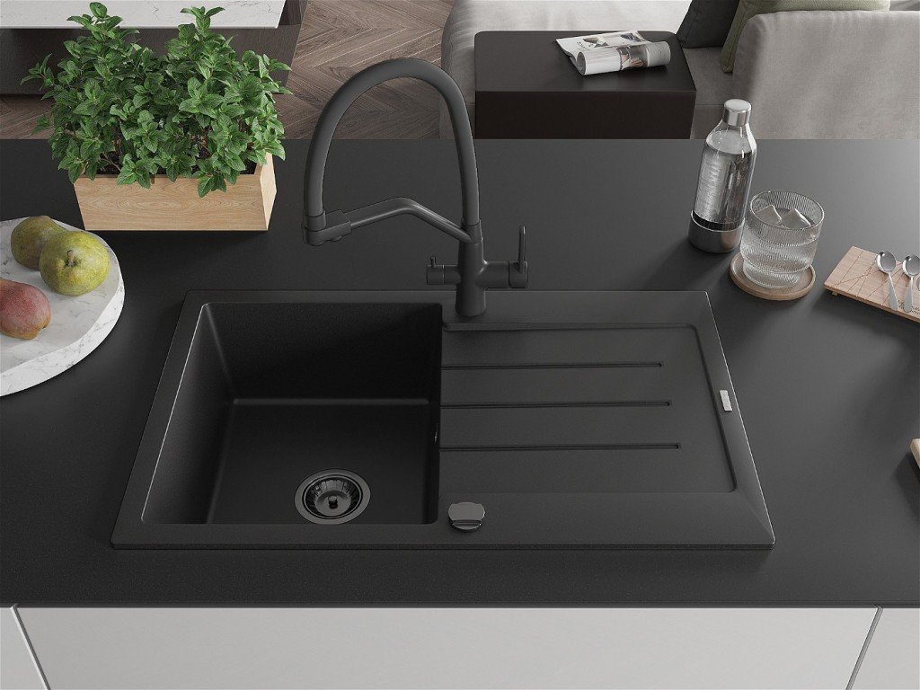 MEXEN/S - Bruno granitový dřez s odkapávačem včetně baterie Duo, černá 6513-77-671701-70-B