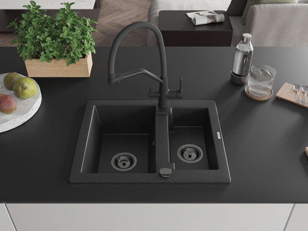 HEBE stojánková dřezová baterie se sprškou, černá mat je ideální volbou pro každou moderní kuchyni. Tato baterie kombinuje funkčnost, elegantní design a vysokou kvalitu. Černá...