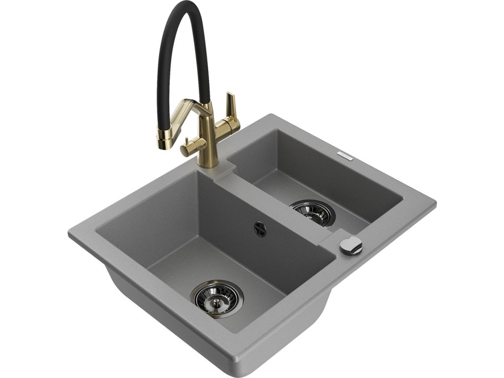 MEXEN/S - Carlos granitový dřez 1.5 včetně baterie Duo, šedá 6518-71-671701-57-B