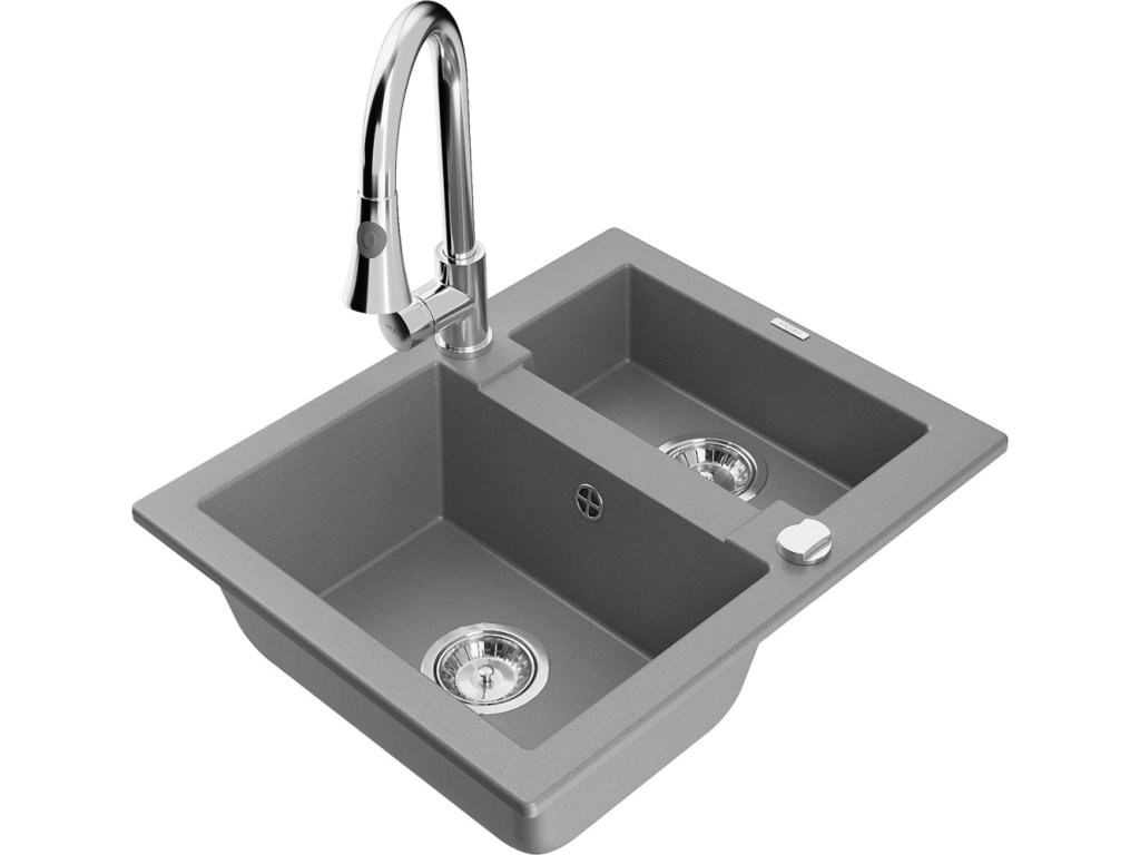 MEXEN/S - Carlos granitový dřez 1.5 včetně baterie Elia, šedá 6518-71-670101-00