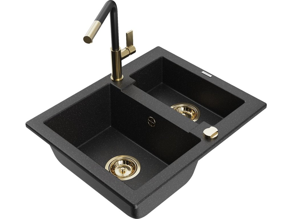 Dřezová vodovodní baterie ULTIMA U-50 v barvě chrom/černá barva s vysokým flexibilním masivním ramenem s hadicí a nastavitelnou sprškou. ULTIMA U-50 v mnohém překračuje střední...