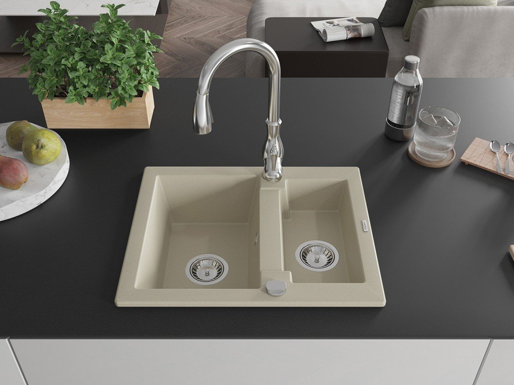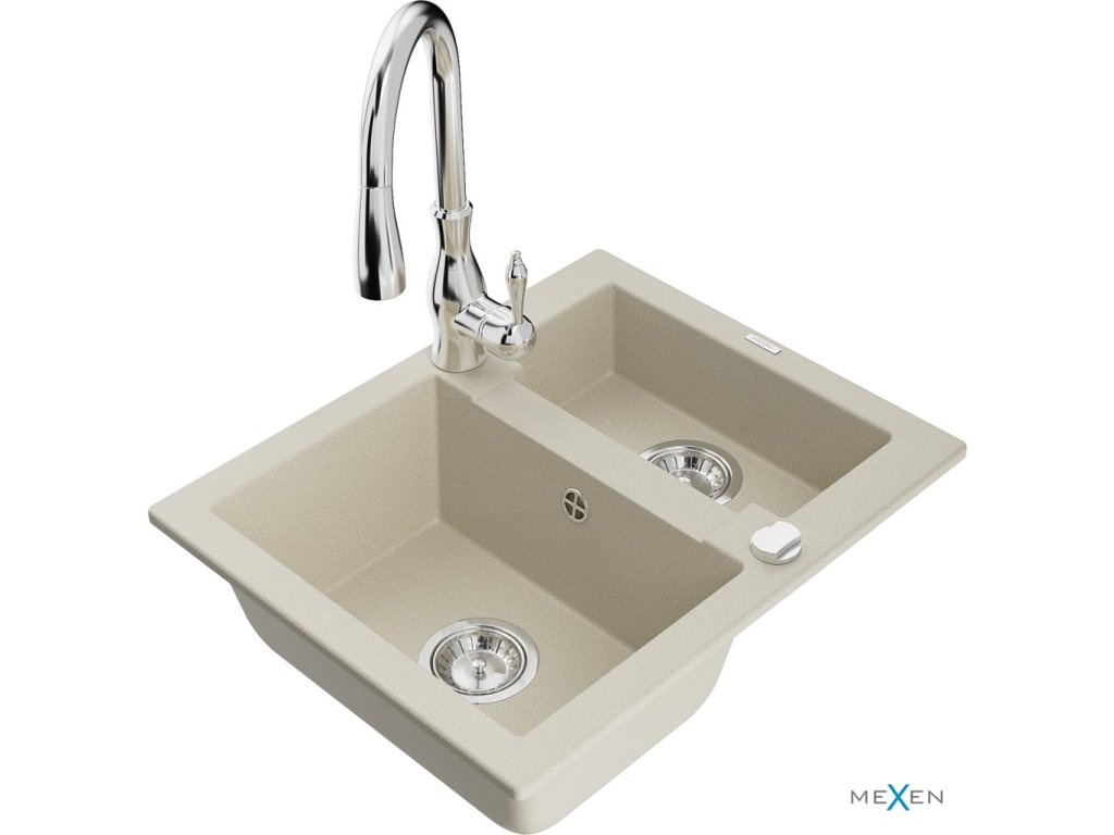 MEXEN/S - Carlos granitový dřez 1.5 včetně baterie Savita, béžová 6518-69-672601-00