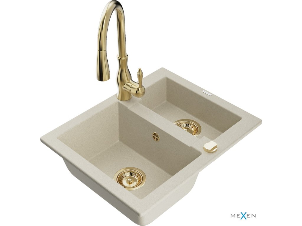 MEXEN/S - Carlos granitový dřez 1.5 včetně baterie Savita, béžová 6518-69-672601-50