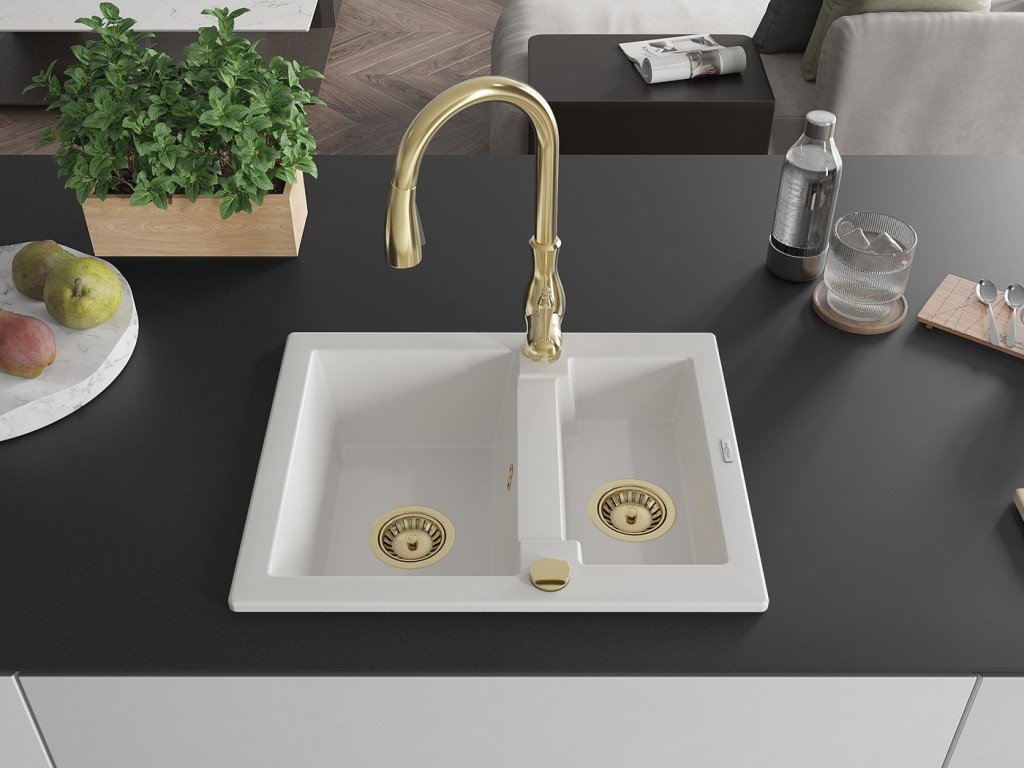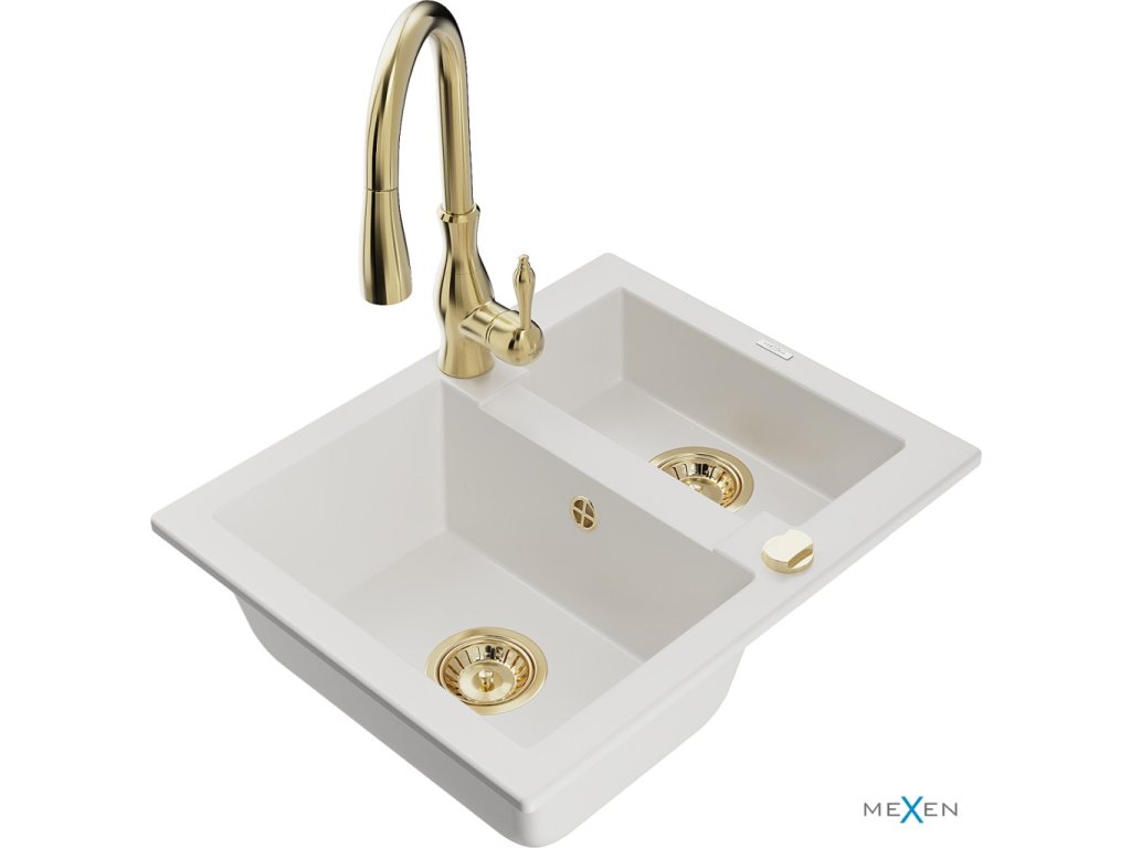 MEXEN/S - Carlos granitový dřez 1.5 včetně baterie Savita, bílá 6518-20-672601-50