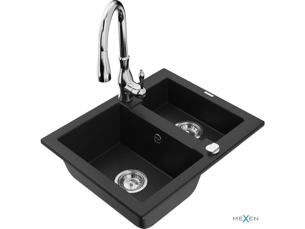 MEXEN/S - Carlos granitový dřez 1.5 včetně baterie Savita, černá 6518-77-672601-00