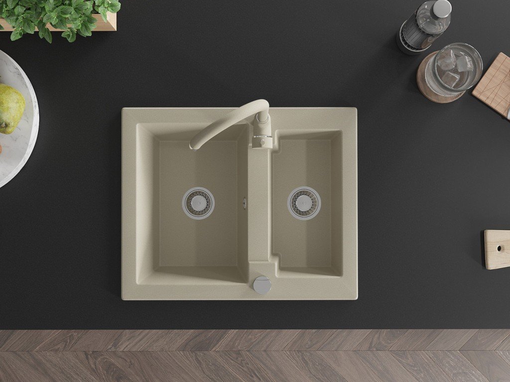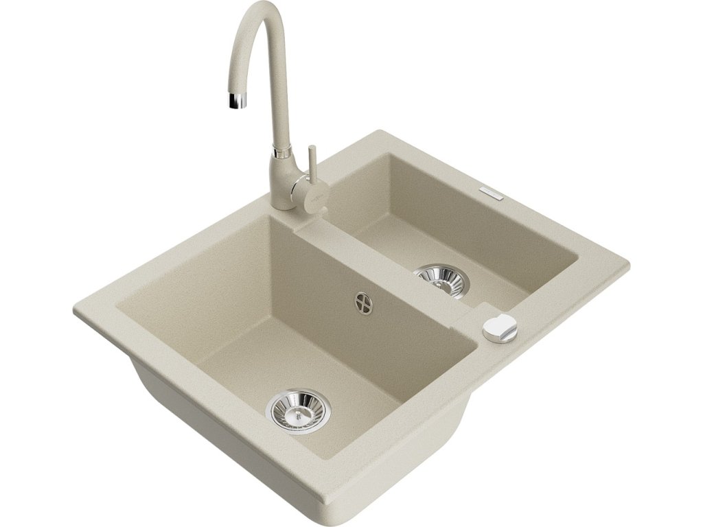 MEXEN/S - Carlos granitový dřez 1.5 včetně baterie Telma, béžová 6518-69-670200-69
