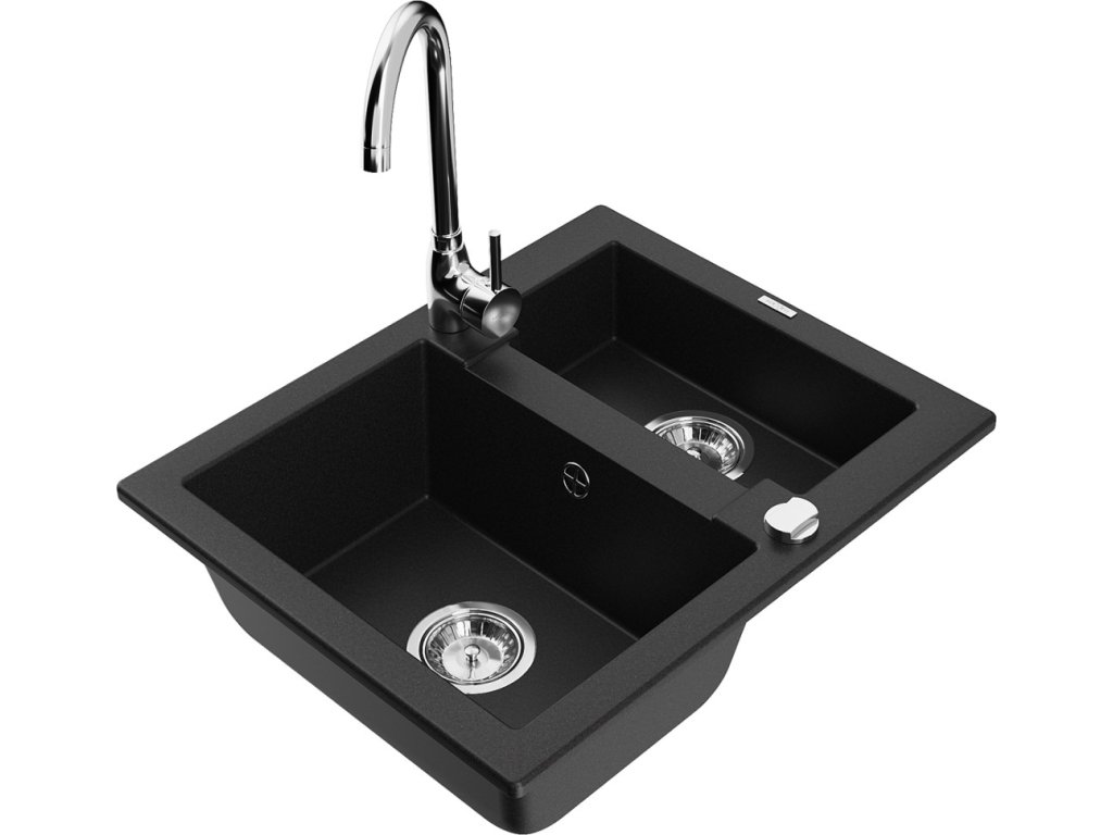 MEXEN/S - Carlos granitový dřez 1.5 včetně baterie Telma, černá 6518-77-670200-00
