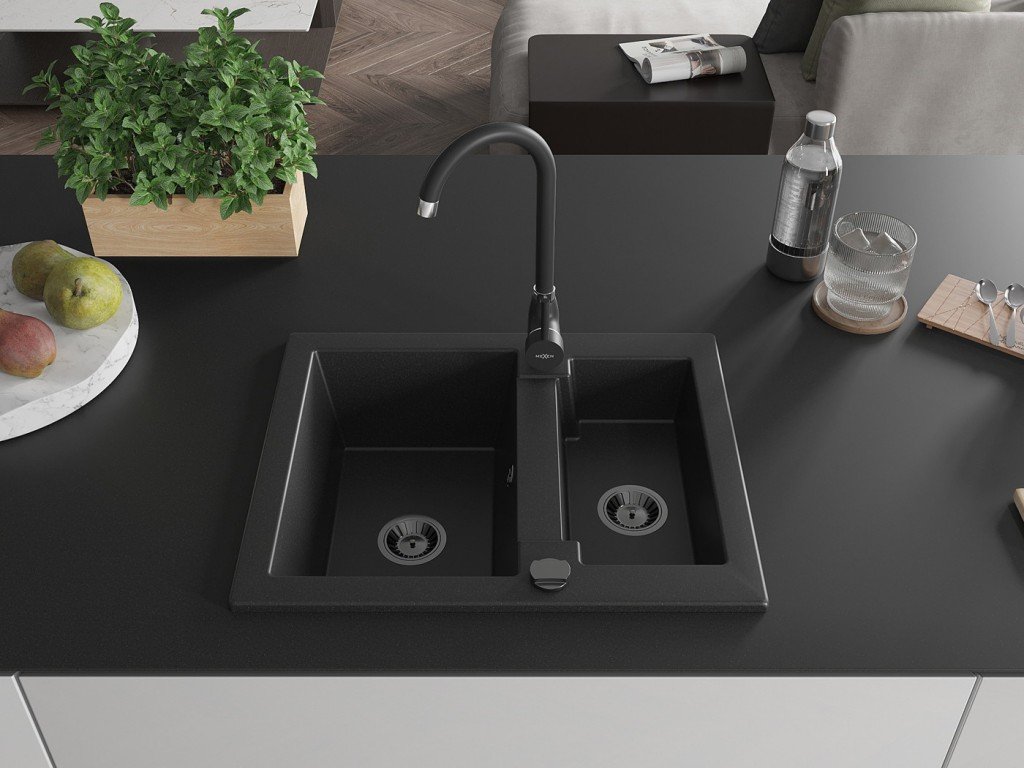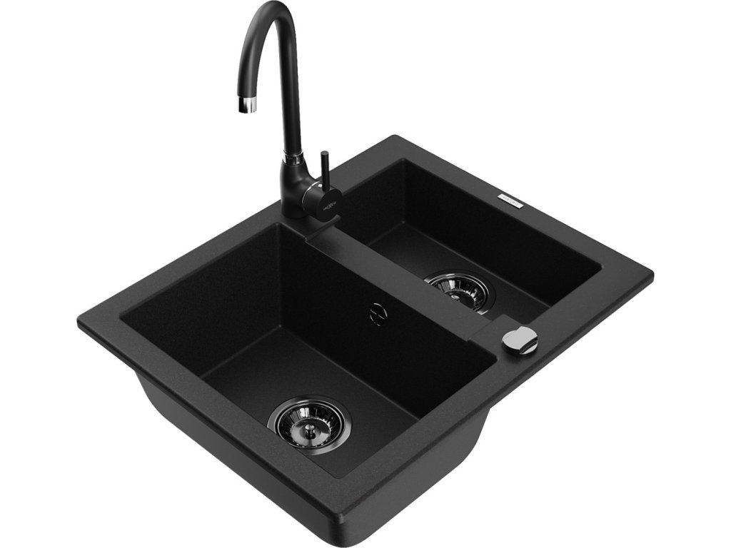 MEXEN/S - Carlos granitový dřez 1.5 včetně baterie Telma, černá 6518-77-670200-70-B