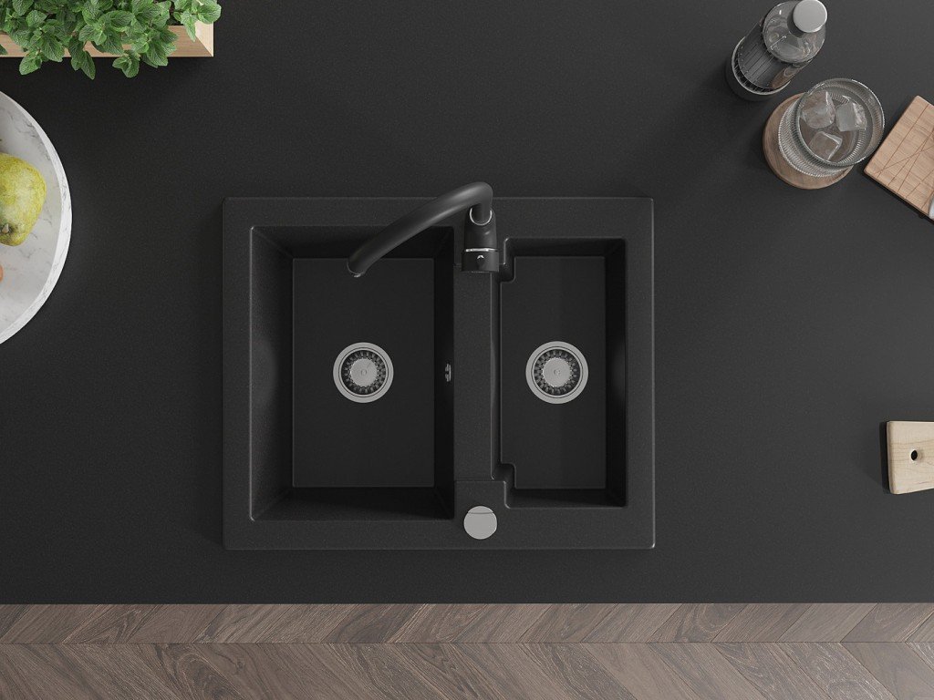 MEXEN/S - Carlos granitový dřez 1.5 včetně baterie Telma, černá 6518-77-670200-70