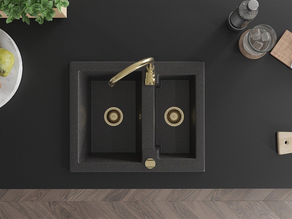 MEXEN/S - Carlos granitový dřez 1.5 včetně baterie Telma, černá kropanatá 6518-76-670200-50