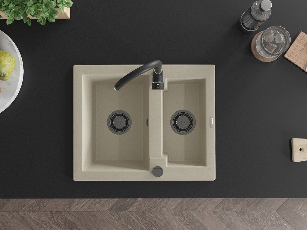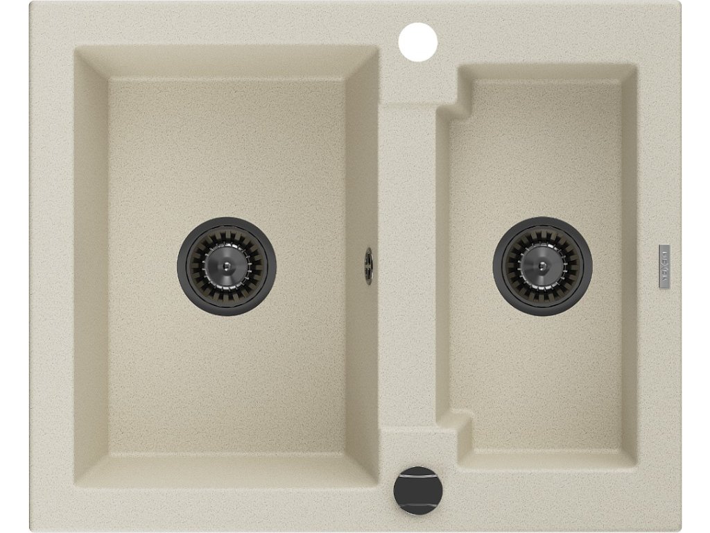 MEXEN/S - Carlos s granitový dřez 1.5 582 x 475 mm, béžová, + černý sifon 6518581500-69-B