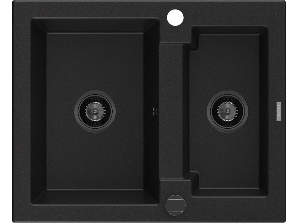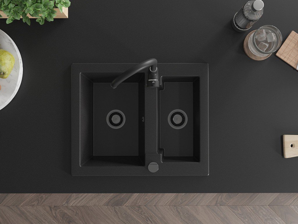 MEXEN/S - Carlos s granitový dřez 1.5 582 x 475 mm, černá, + černý sifon 6518581500-77-B