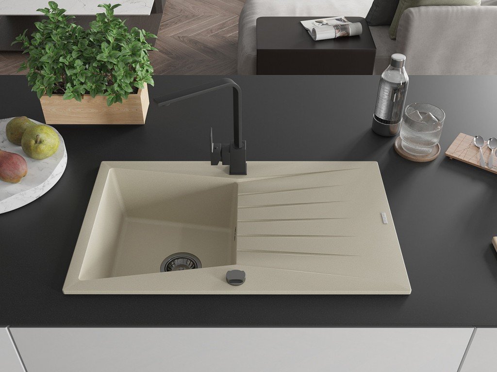 Kuchyňský granitový dřez odolný vůdči poškrábání, teplotním šokům a nárazům. Směs přírodní pryskyřice a hustého granitu.