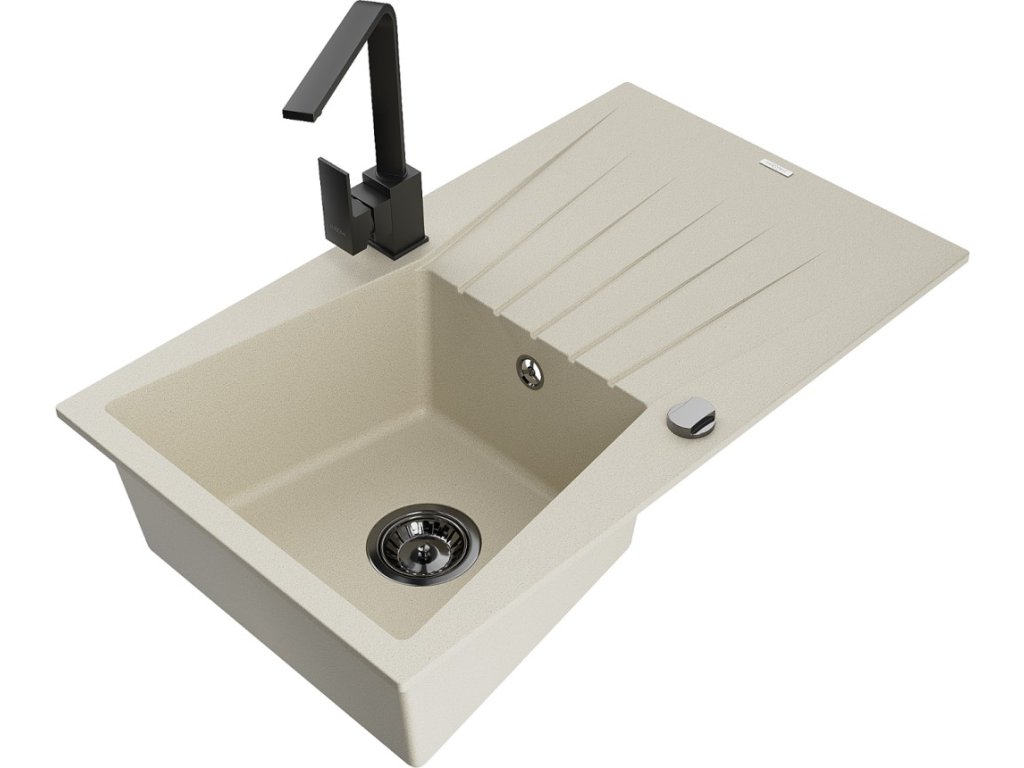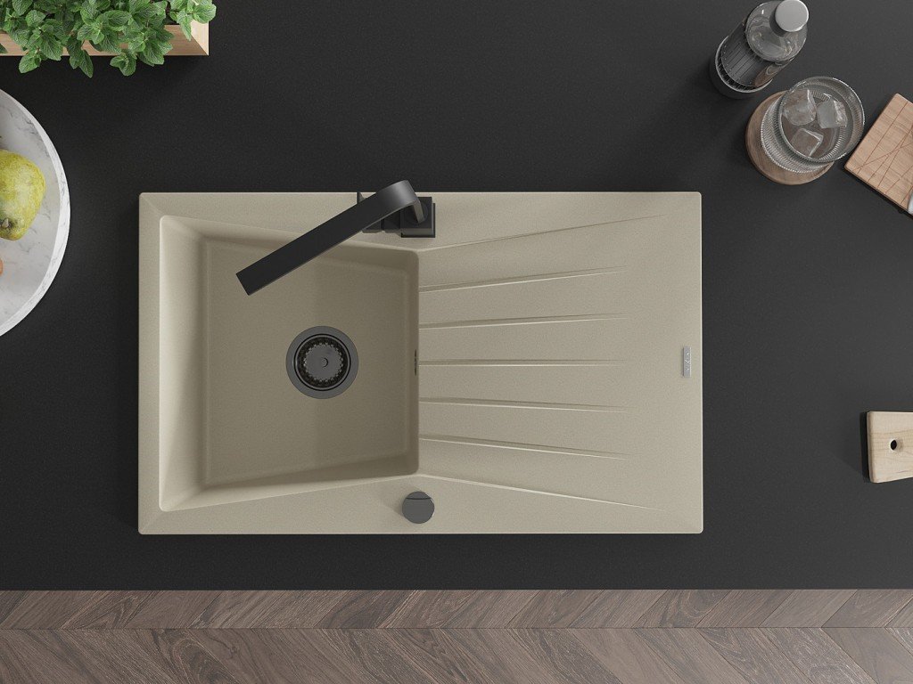 MEXEN/S - Cesar granitový dřez 1-miska s odkapávačem včetně baterie Rita, béžový 6514-69-670300-70