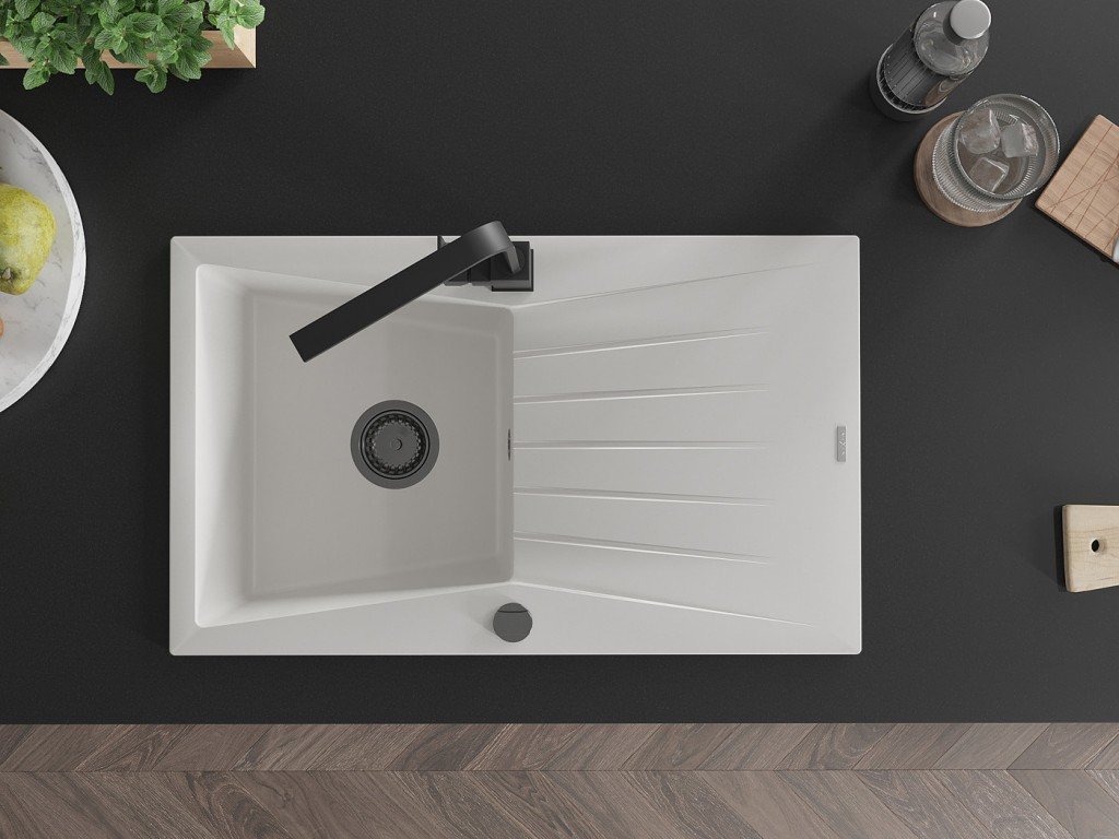 MEXEN/S - Cesar granitový dřez 1-miska s odkapávačem včetně baterie Rita, bílá 6514-20-670300-70