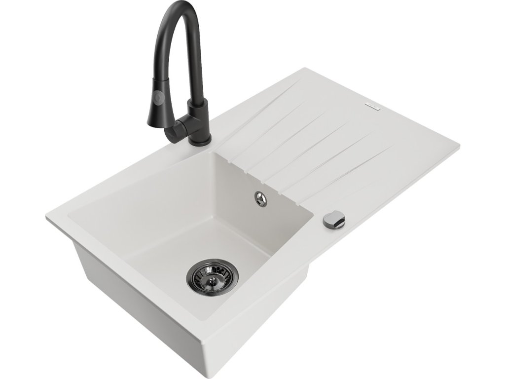 MEXEN/S - Cesar granitový dřez 1 s odkapávačem včetně baterie Elia, bílá 6514-20-670101-70