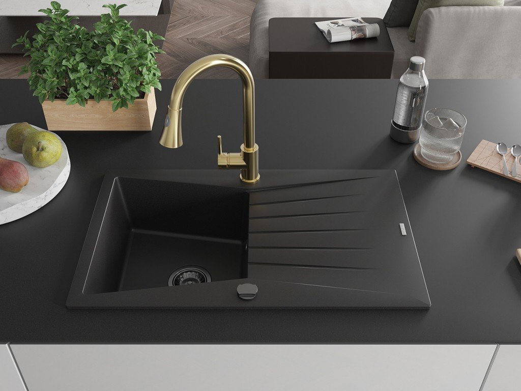 Kuchyňský granitový dřez odolný vůdči poškrábání, teplotním šokům a nárazům. Směs přírodní pryskyřice a hustého granitu.