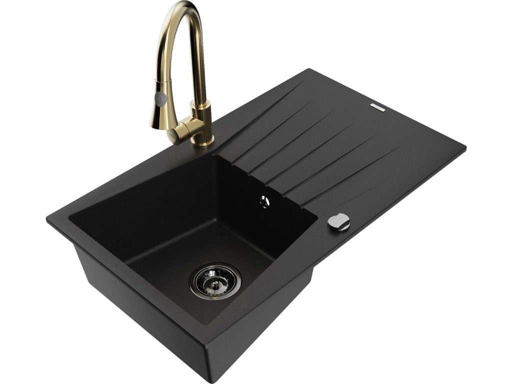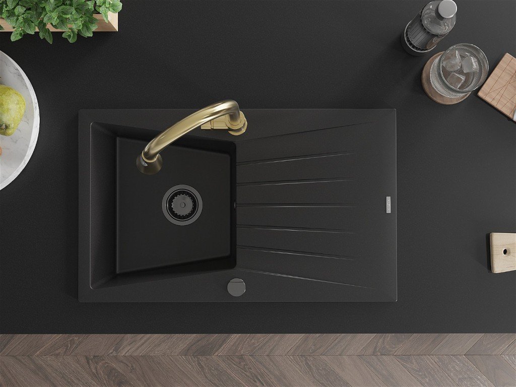 MEXEN/S - Cesar granitový dřez 1 s odkapávačem včetně baterie Elia, černá 6514-77-670101-50-B