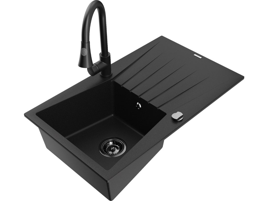 MEXEN/S - Cesar granitový dřez 1 s odkapávačem včetně baterie Elia, černá 6514-77-670101-70-B