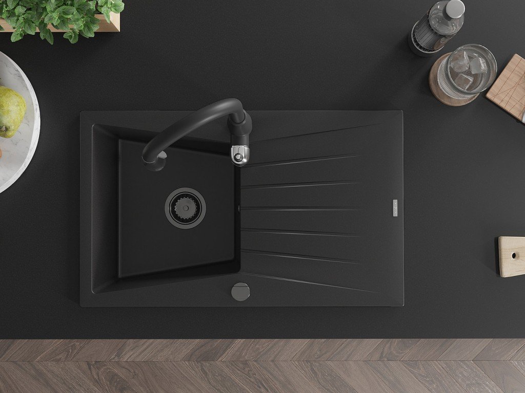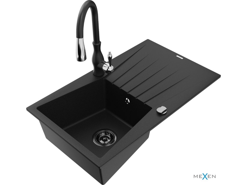 MEXEN/S - Cesar granitový dřez 1 s odkapávačem včetně baterie Savita, černá 6514-77-672601-70-B
