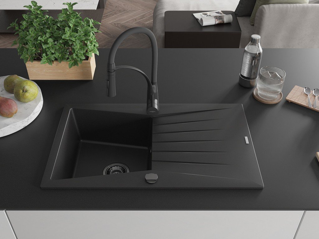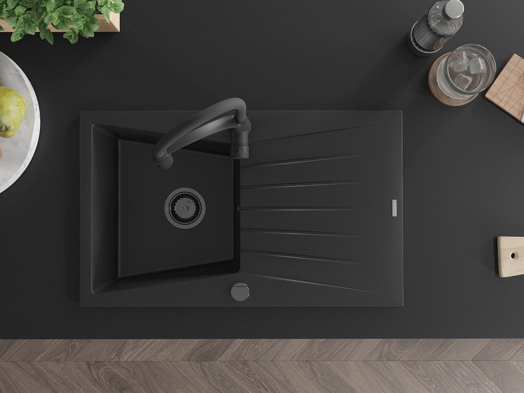 Kuchyňský granitový dřez odolný vůdči poškrábání, teplotním šokům a nárazům. Směs přírodní pryskyřice a hustého granitu.