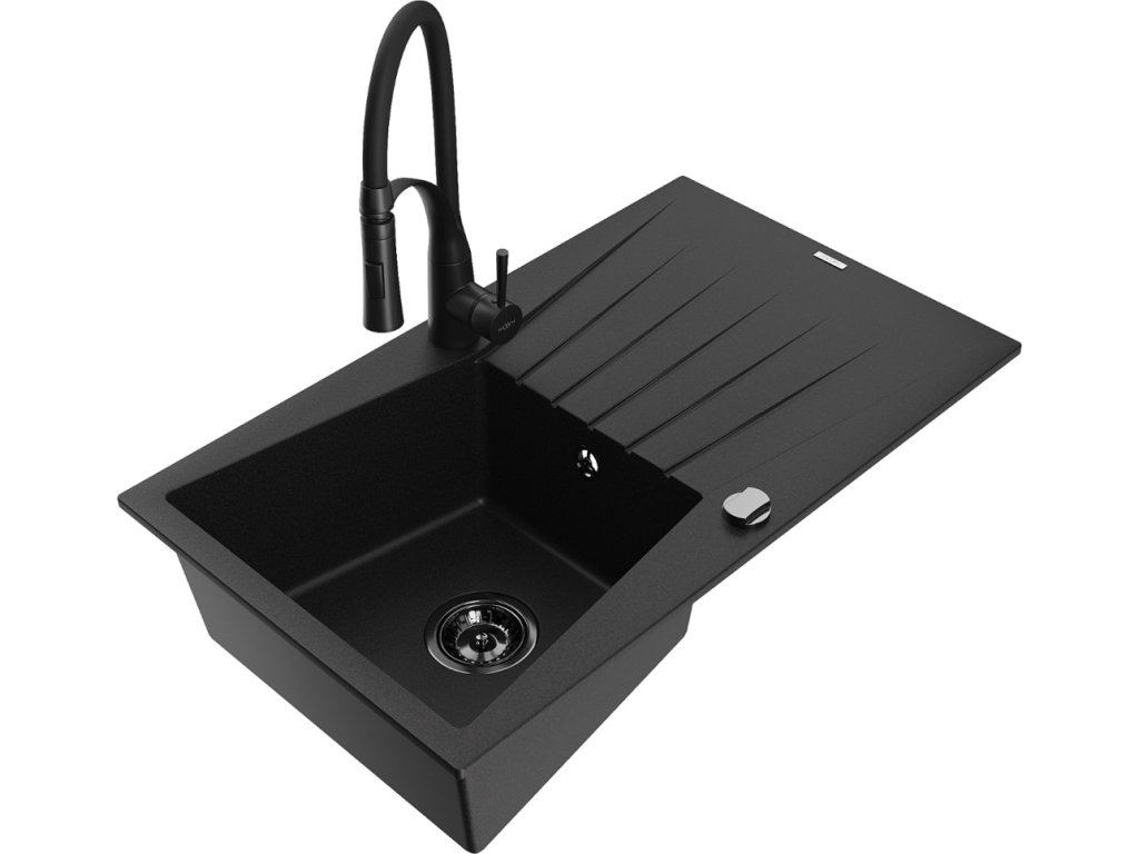 MEXEN/S - Cesar granitový dřez s odkapávačem včetně baterie Aster, černá 6514-77-73450-70-B