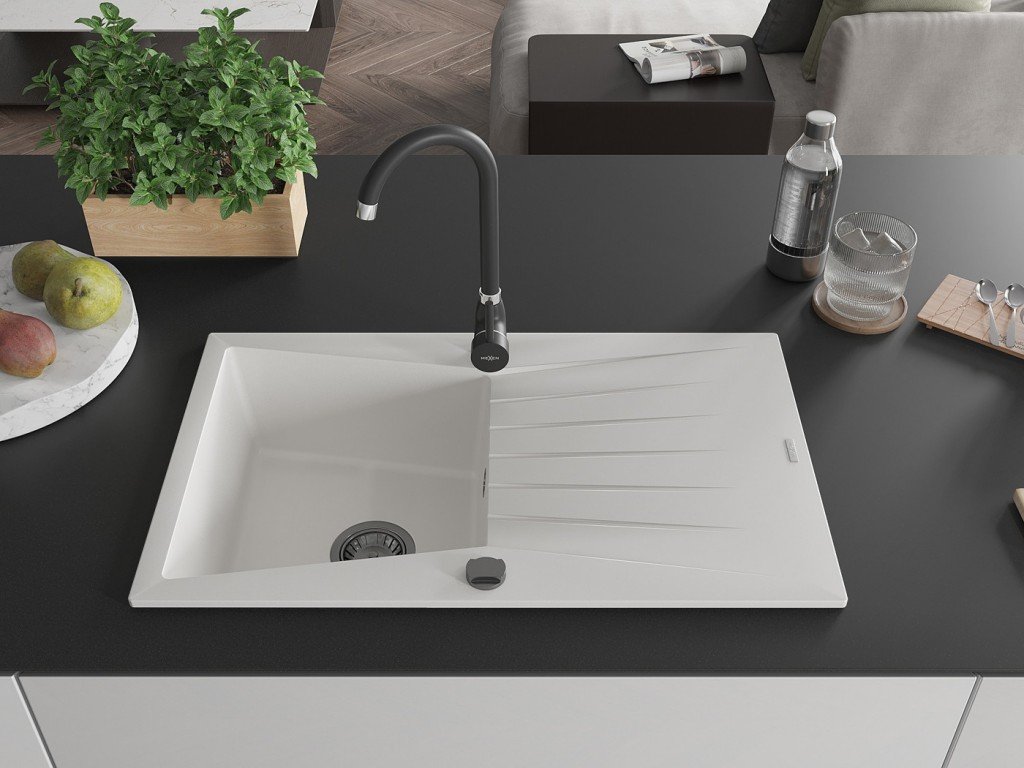 Kuchyňský granitový dřez odolný vůdči poškrábání, teplotním šokům a nárazům. Směs přírodní pryskyřice a hustého granitu.
