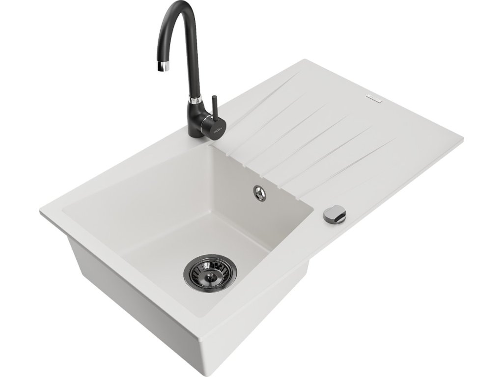 MEXEN/S - Cesar granitový dřez s odkapávačem včetně baterie Telma, bílá 6514-20-670200-70