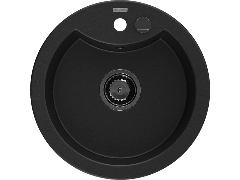 MEXEN/S - Diego granitový dřez 1-miska 488 x 480 mm, černý, černý sifon 6512481000-77-B