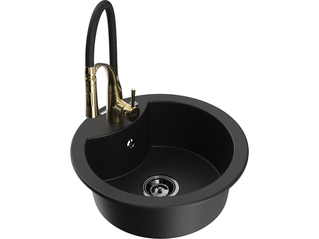 MEXEN/S - Diego granitový dřez 1-miska včetně baterie Aster, černá 6512-77-73450-57-B
