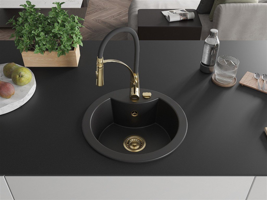 MEXEN/S - Diego granitový dřez 1-miska včetně baterie Aster, černá 6512-77-73450-57-G
