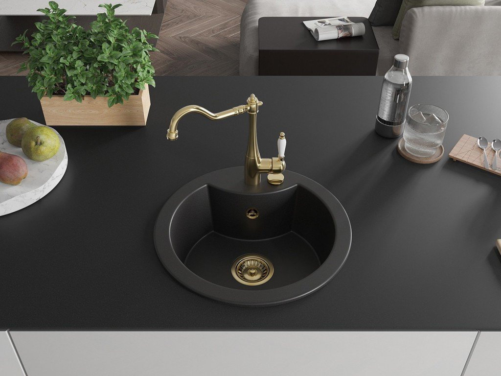 Kuchyňský granitový dřez odolný vůdči poškrábání, teplotním šokům a nárazům. Směs přírodní pryskyřice a hustého granitu.