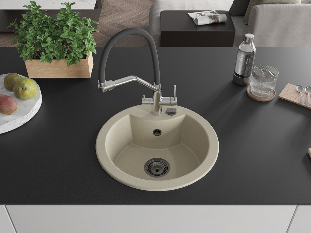 Kuchyňský granitový dřez odolný vůdči poškrábání, teplotním šokům a nárazům. Směs přírodní pryskyřice a hustého granitu.