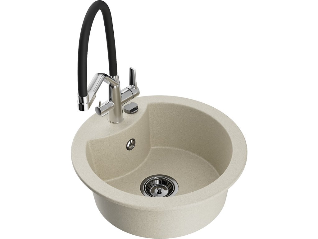 MEXEN/S - Diego granitový dřez 1-miska včetně baterie Duo, béžová 6512-69-671701-07-B