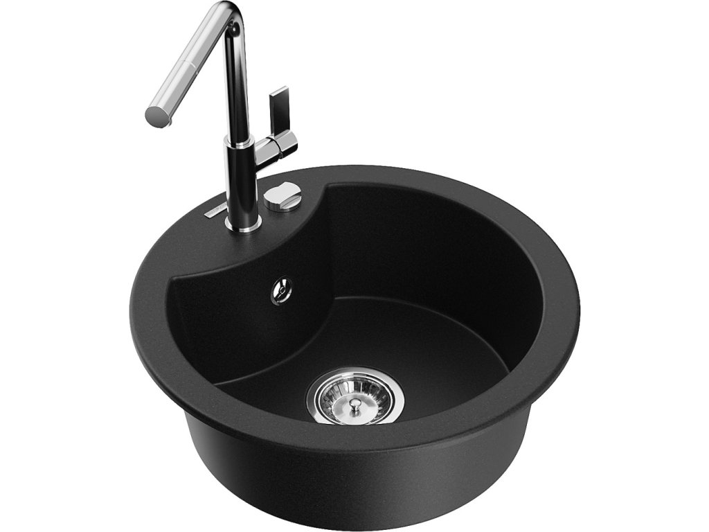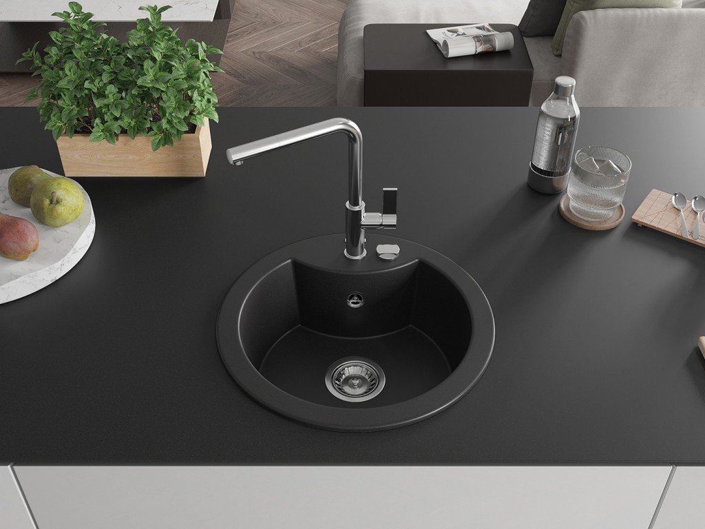 MEXEN/S - Diego granitový dřez 1-miska včetně baterie Flora, černá 6512-77-670401-00