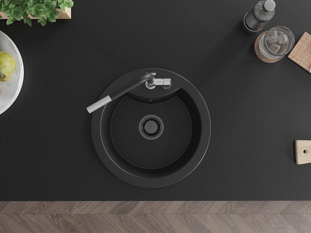 Kuchyňský granitový dřez odolný vůdči poškrábání, teplotním šokům a nárazům. Směs přírodní pryskyřice a hustého granitu.