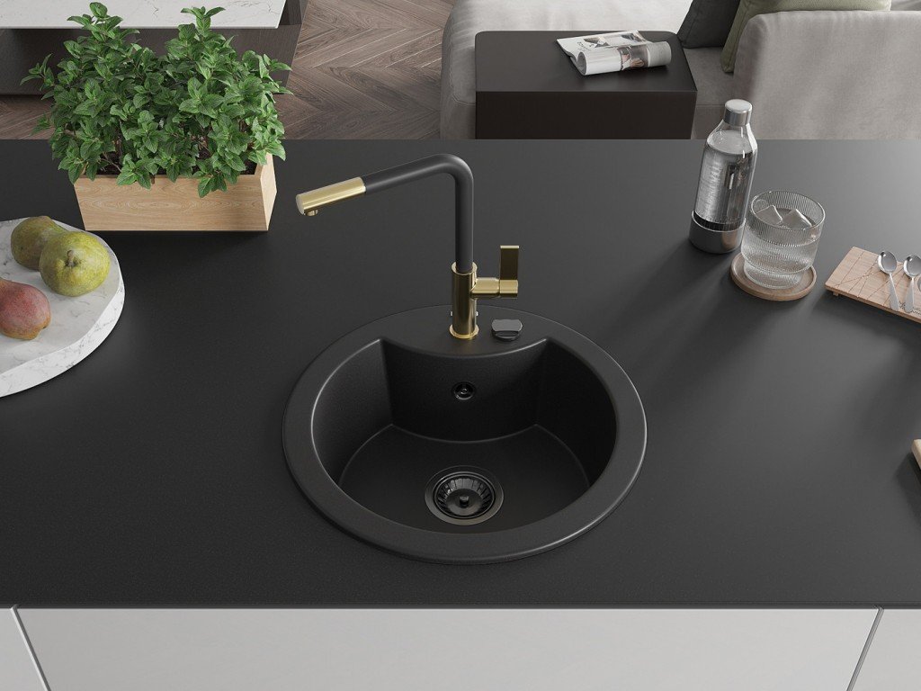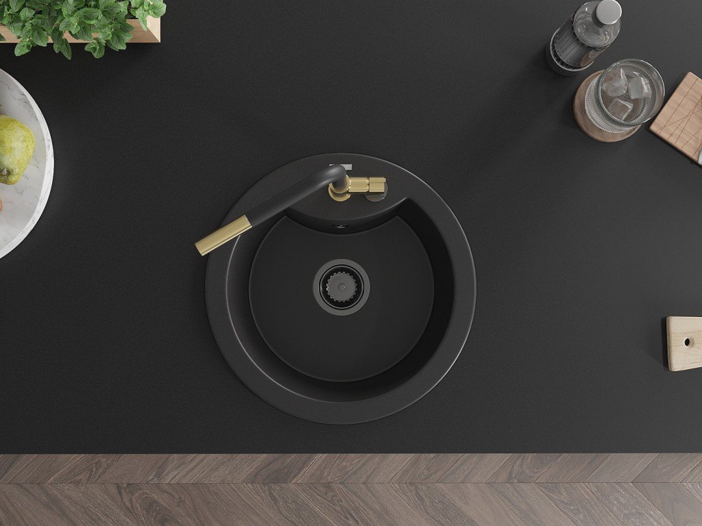Kuchyňský granitový dřez odolný vůdči poškrábání, teplotním šokům a nárazům. Směs přírodní pryskyřice a hustého granitu.