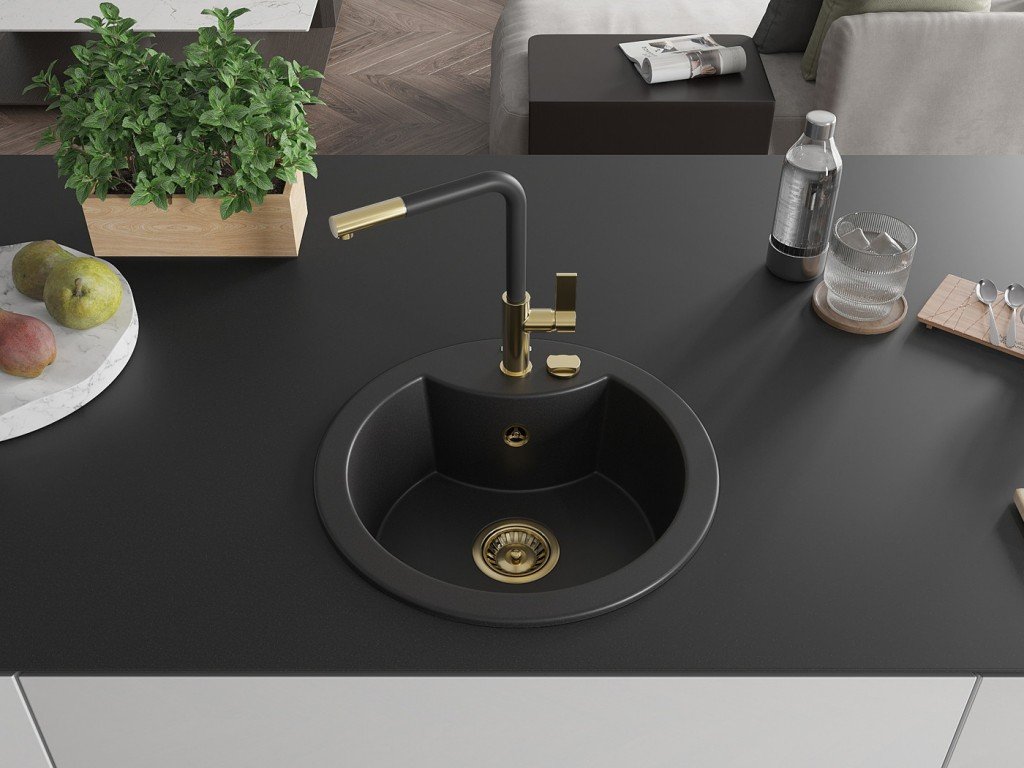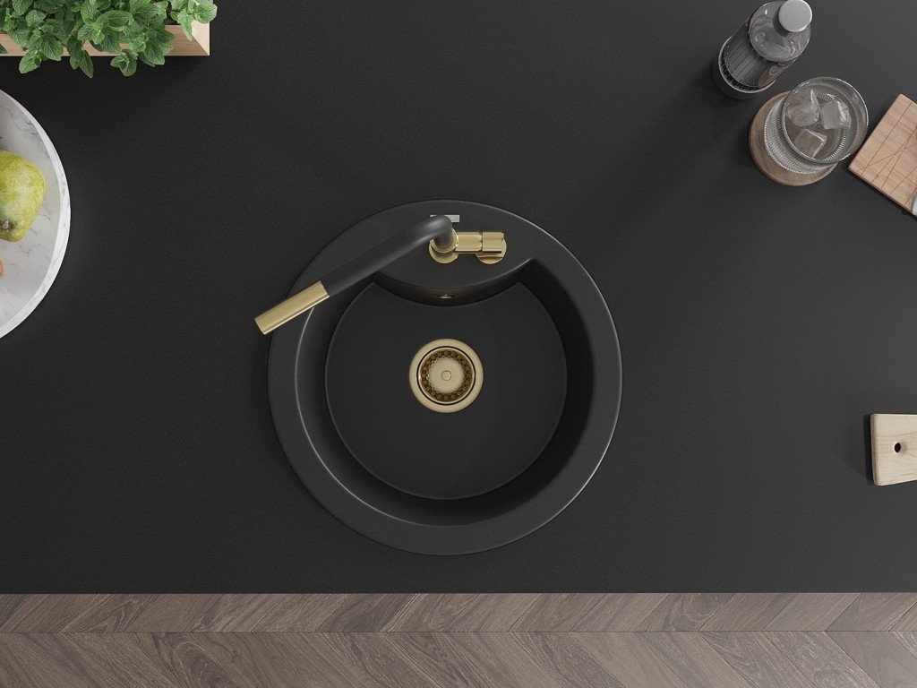 Kuchyňský granitový dřez odolný vůdči poškrábání, teplotním šokům a nárazům. Směs přírodní pryskyřice a hustého granitu.