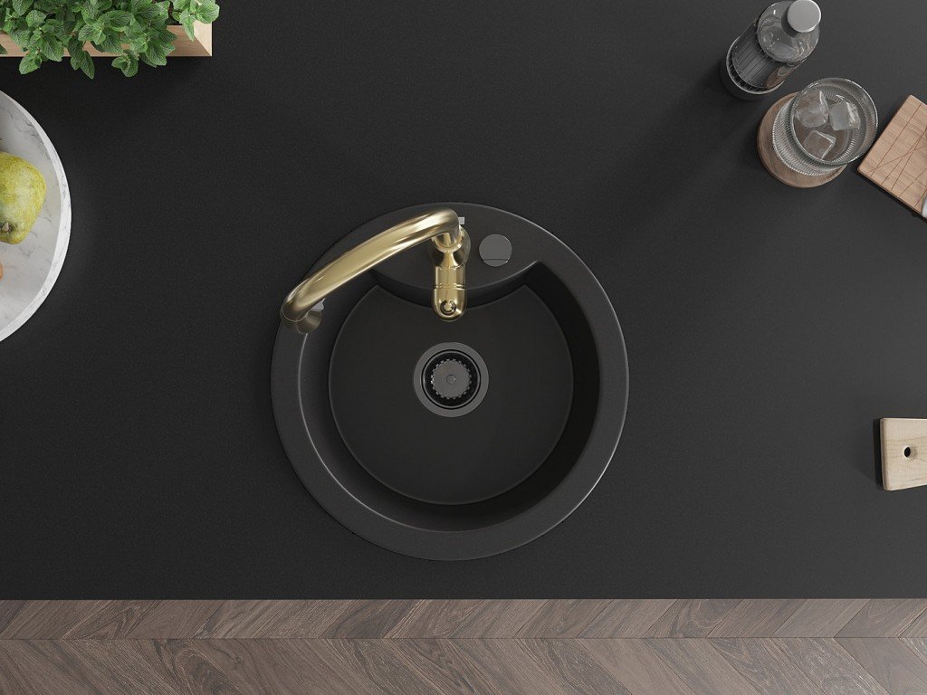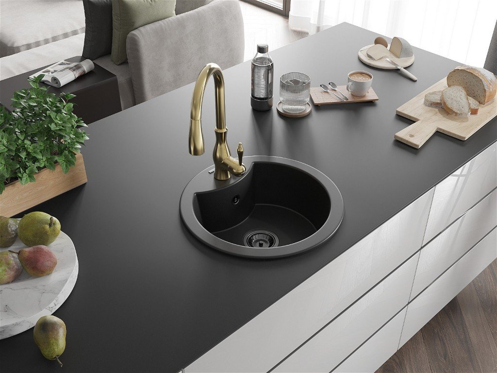 Kuchyňský granitový dřez odolný vůdči poškrábání, teplotním šokům a nárazům. Směs přírodní pryskyřice a hustého granitu.