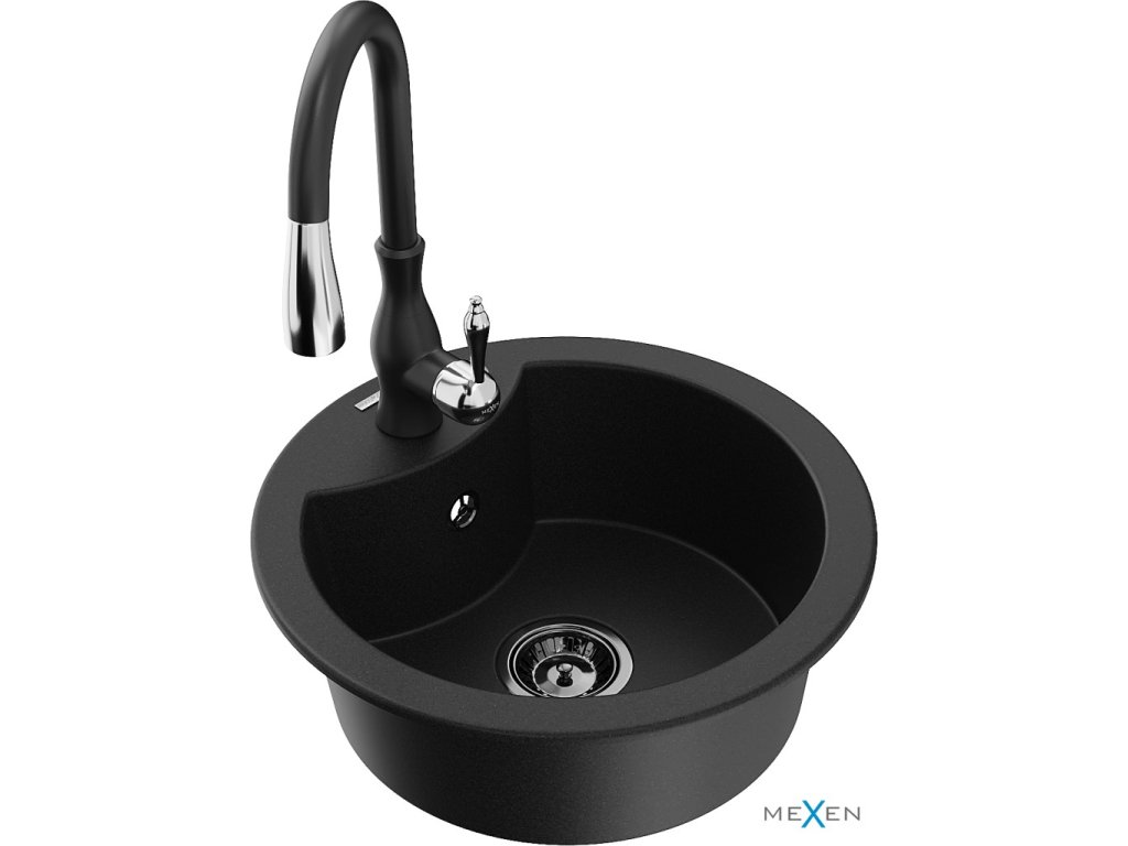 MEXEN/S - Diego granitový dřez 1-miska včetně baterie Savita, černá 6512-77-672601-70-B