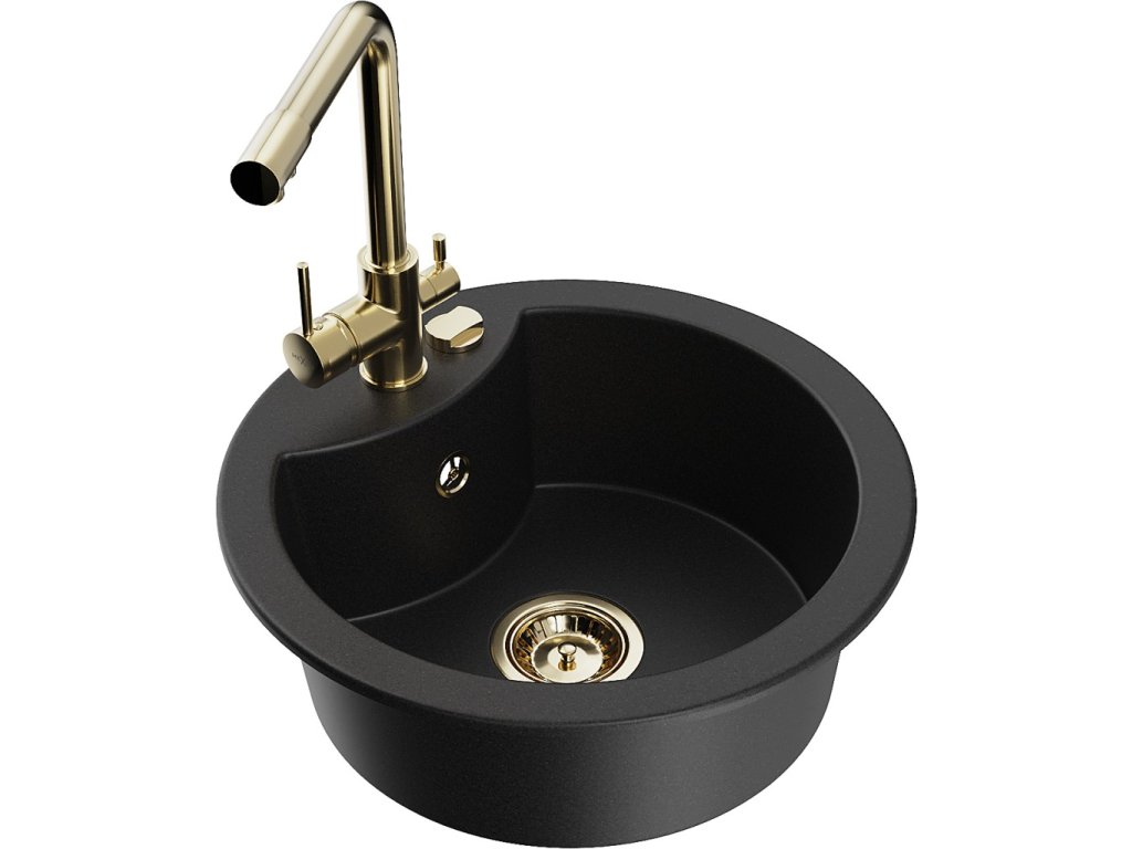 MEXEN/S - Diego granitový dřez včetně baterie Duero, černá 6512-77-671600-50